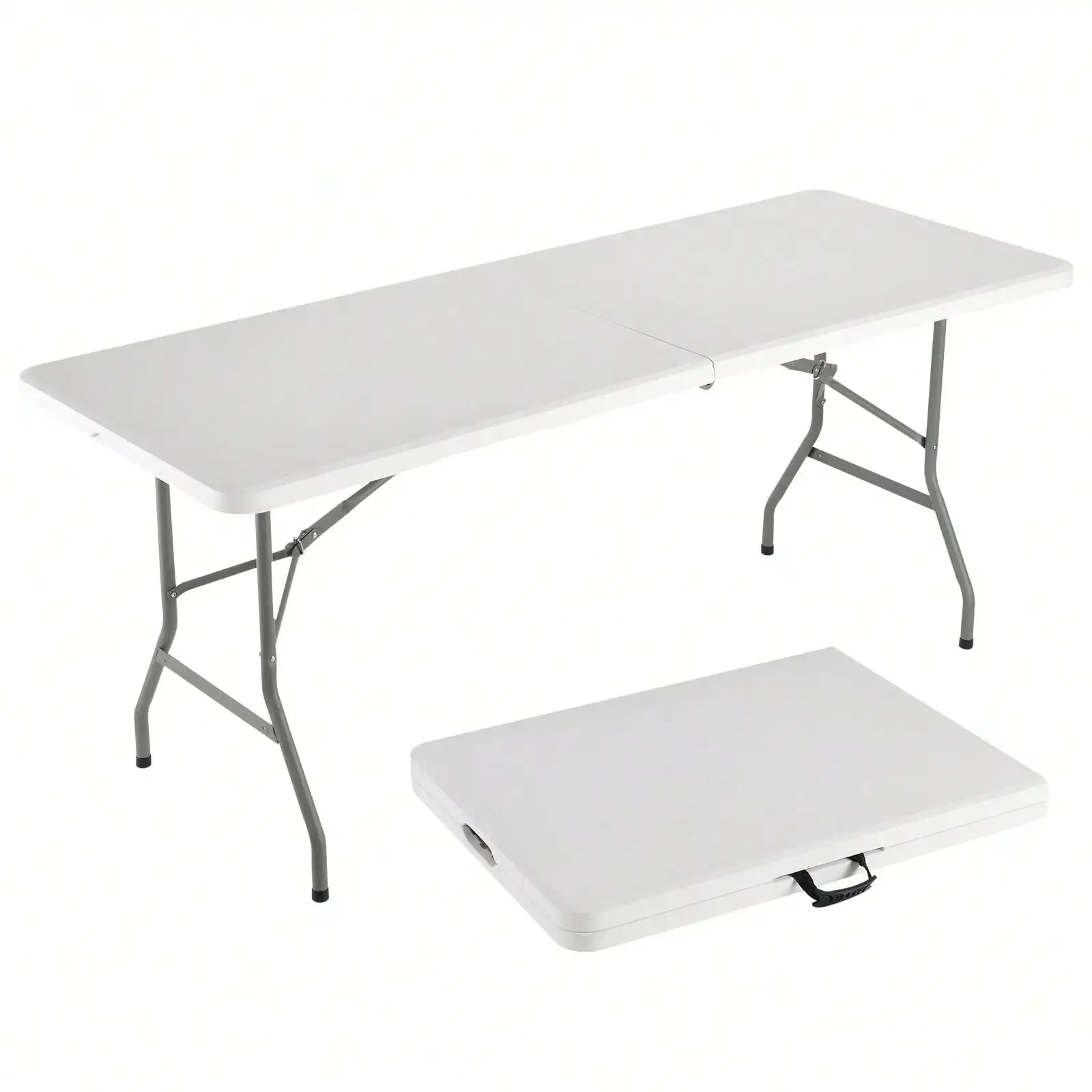 This rectangular folding dining table blends clean, minimalist aesthetics with practical versatility, making it a smart addition to both indoor and outdoor spaces. The tabletop is crafted from PE for a lightweight, easy-to-clean surface, while the sturdy metal frame provides stable support during meals, crafts, or casual gatherings. When the event ends, simply fold the table down for compact storage, freeing up precious floor space in small apartments or busy homes. Designed to accommodate up to six diners, it’s ready to adapt as your hosting needs change from weeknight dinners to overflow seating for guests.